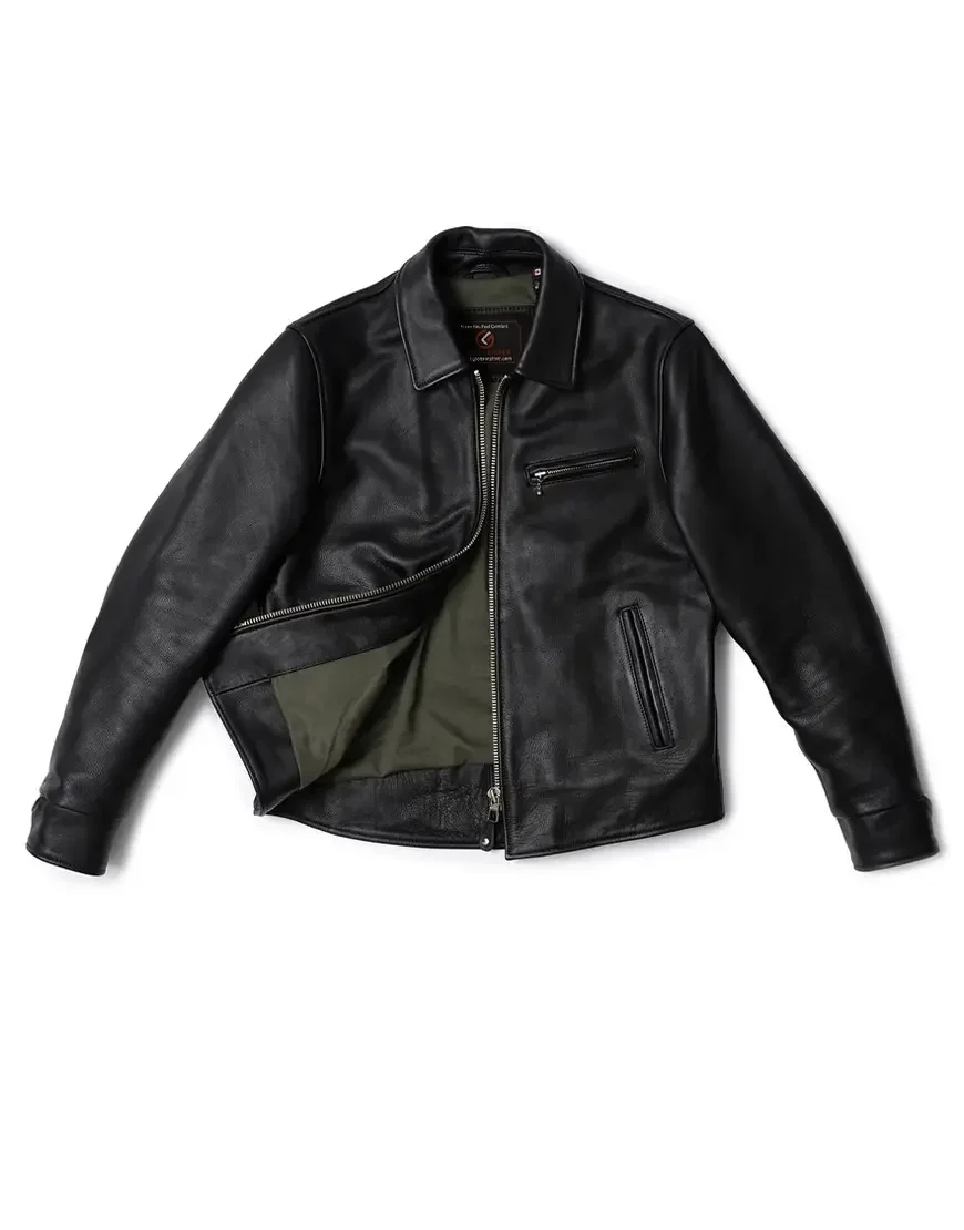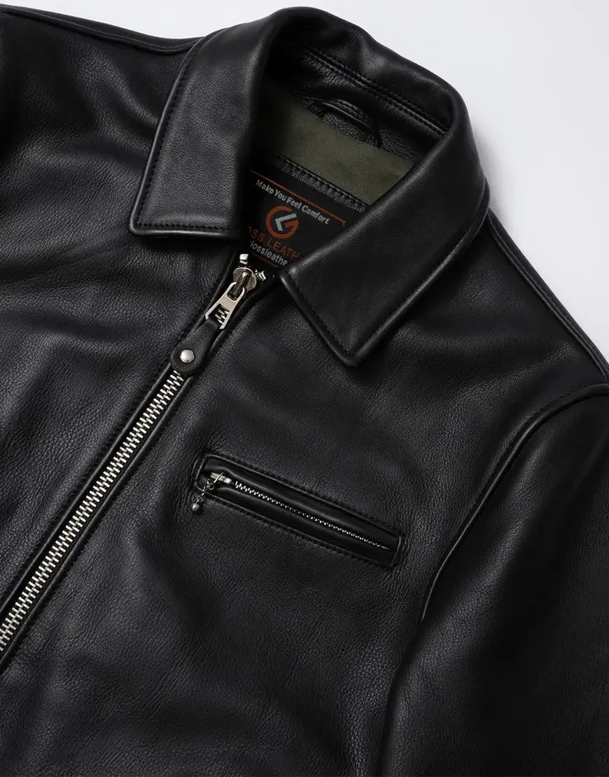 Cowhide Black Leather Jacket For Men