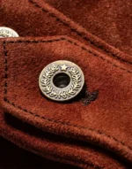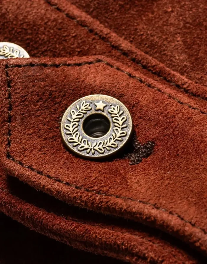 At the front, the Convoy features custom solid zinc donut buttons with a double-prong design, paired with two Western-style chest flap pockets finished with subtle tone-on-tone embroidery. A widened upper chest seam allows the collar to sit naturally open, creating a soft lapel-style roll without losing its rugged lines.