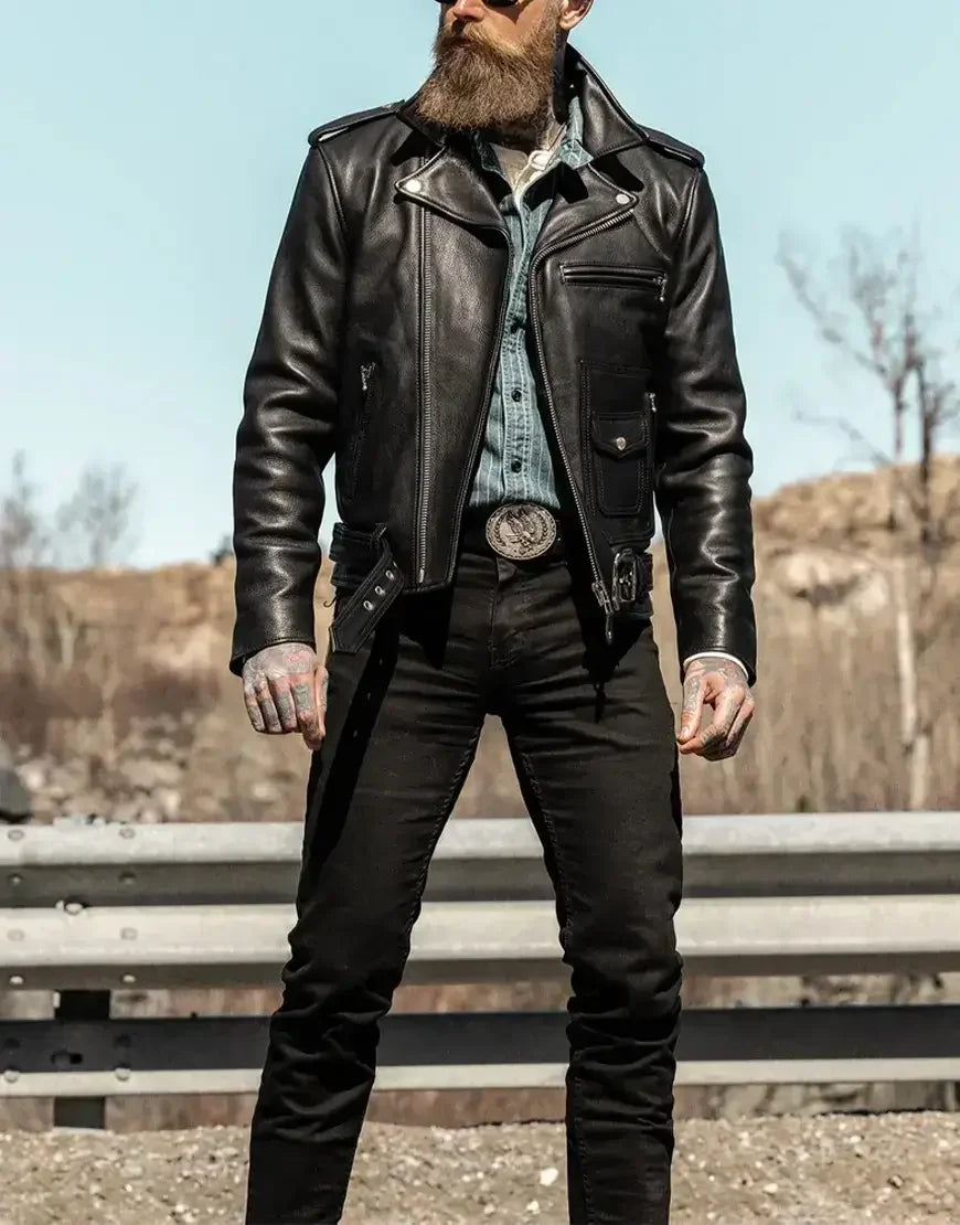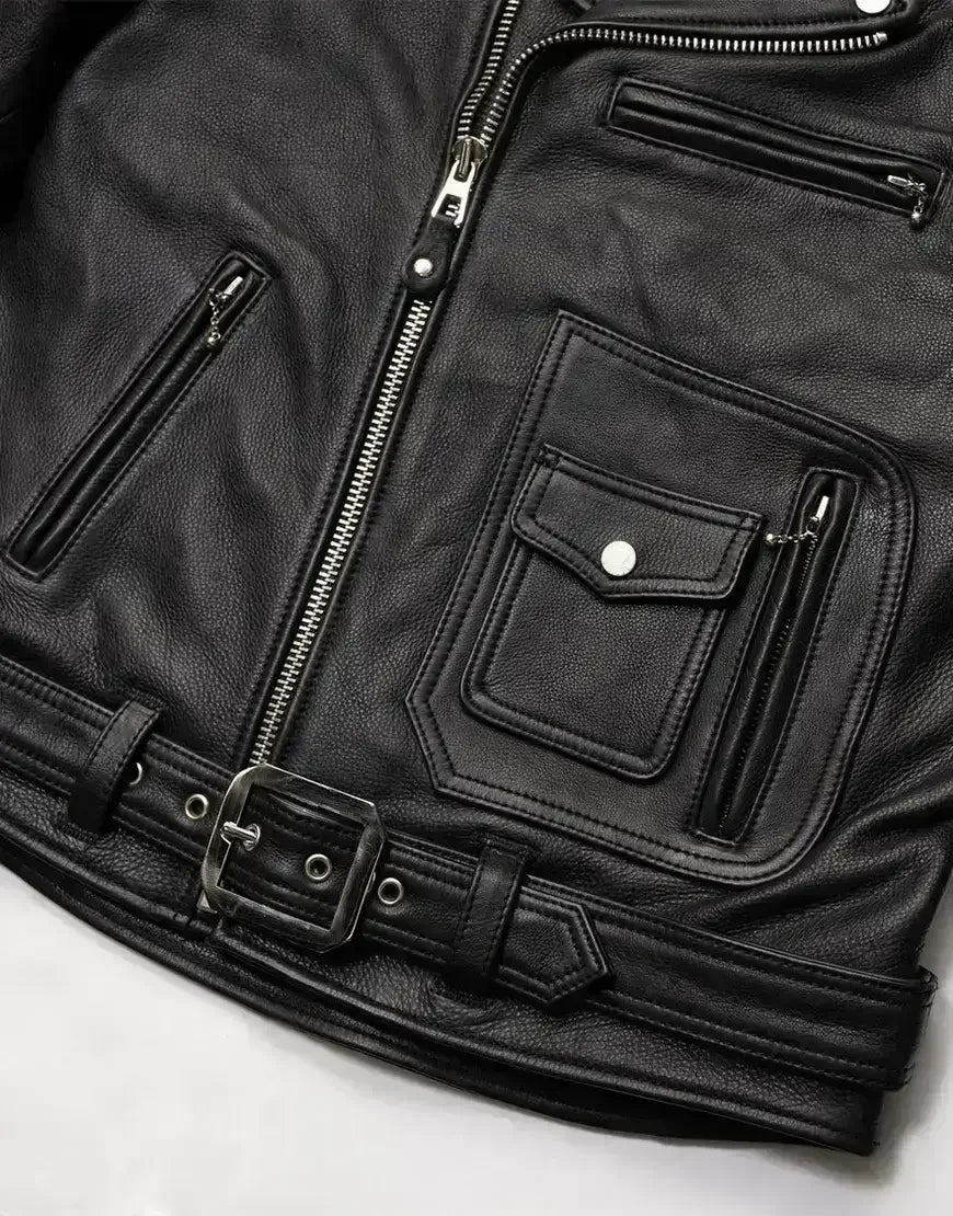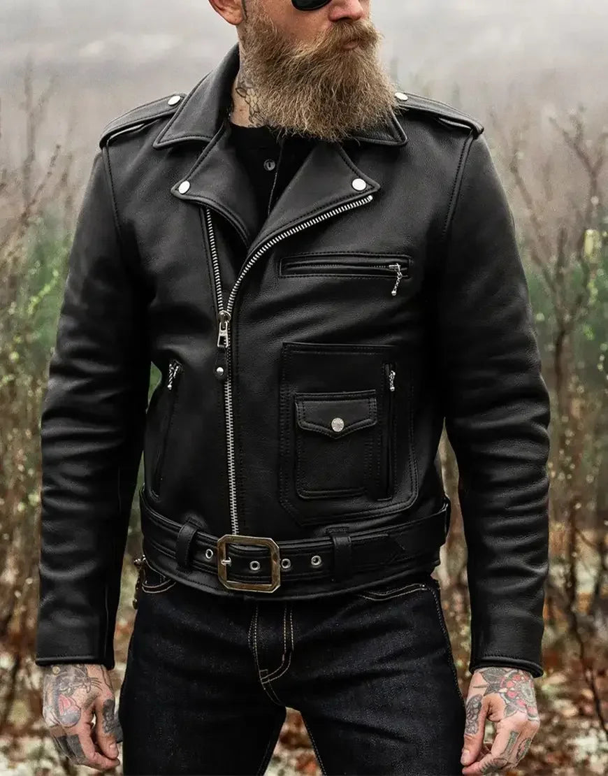 The Nova Double Rider takes inspiration from classic motorcycle gear while adding modern touches. It features dual zippers, shoulder epaulets, a waist belt, and silver hardware for a sharp, masculine edge. The soft inner lining ensures comfort during every ride, while the tailored fit complements your physique — perfect for both the open road and urban life.