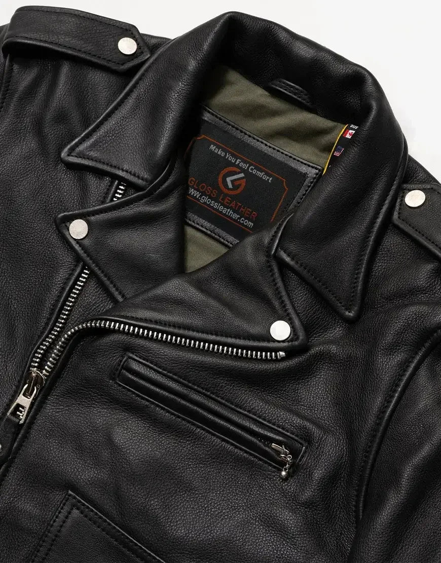 At Gloss Leather, we use premium full-grain leather that feels soft yet durable. Each Nova jacket is hand-stitched by expert craftsmen who focus on precision and durability. The leather matures beautifully, developing a natural patina that adds character over time. From the cut to the finish, every part of this jacket reflects true craftsmanship and American spirit.